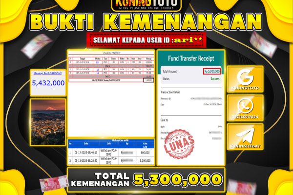 Bukti JackPot Togel Member KUNINGTOTO 05 Desember 2025 OREGON 2 Memenangkan Jackpot Permainan Slot online sangat populer di kalangan pemain…