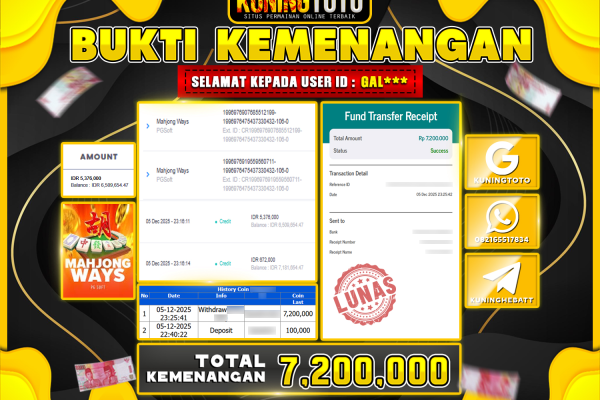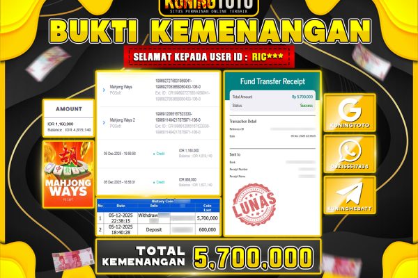 Bukti Kemenangan Slot KuningToto 05 Desember 2025 Slot Mahjong Ways